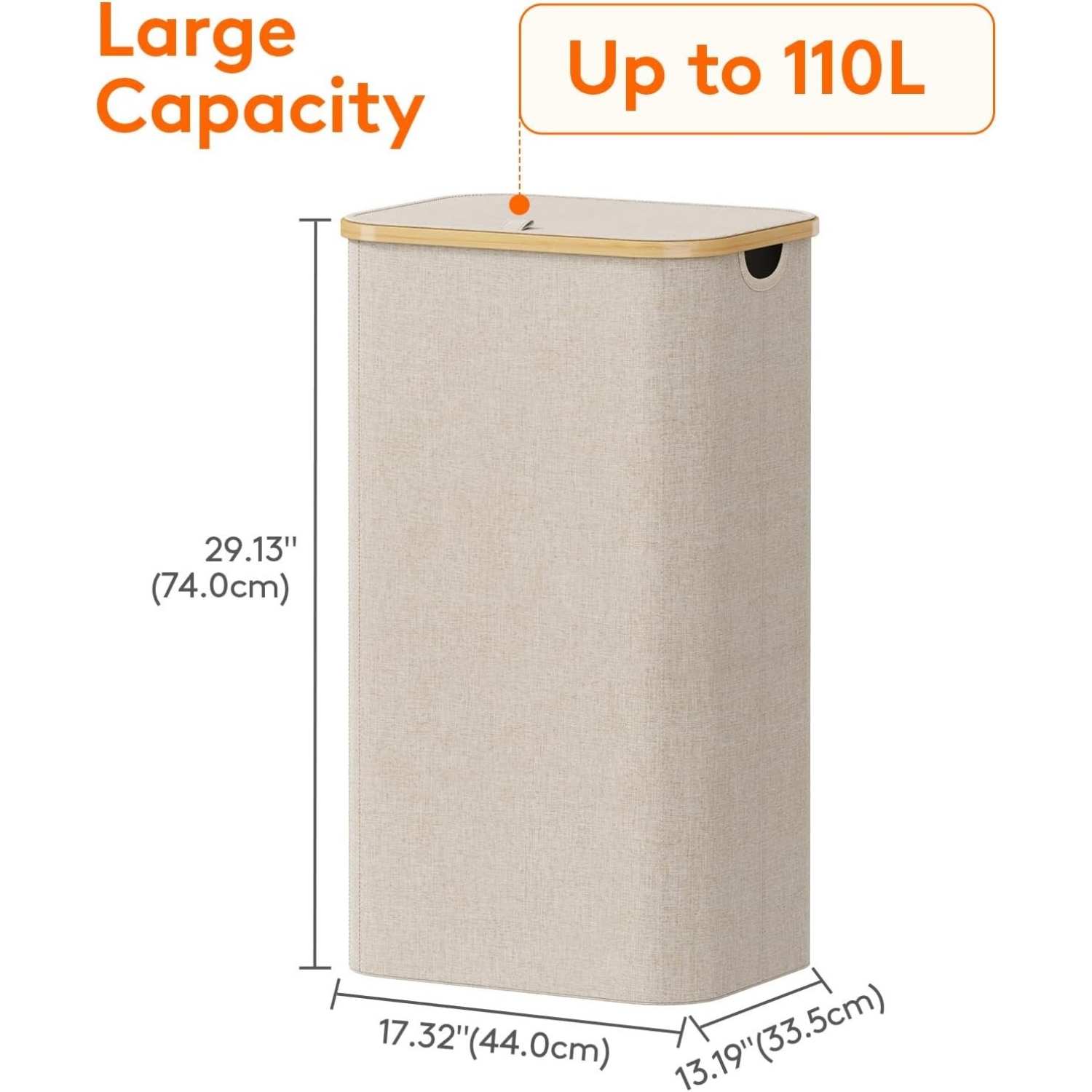 • Large Capacity: Measuring 17.32”(44.0cm) x 13.19”(33.5cm) x 29.13”(74.0cm) and with a capacity of 110L, this large laundry basket can hold 2-2.5 loads of clothes with ease. The sturdy and freestanding structure can bear up to 26.5lbs/12kg of load without collapsing