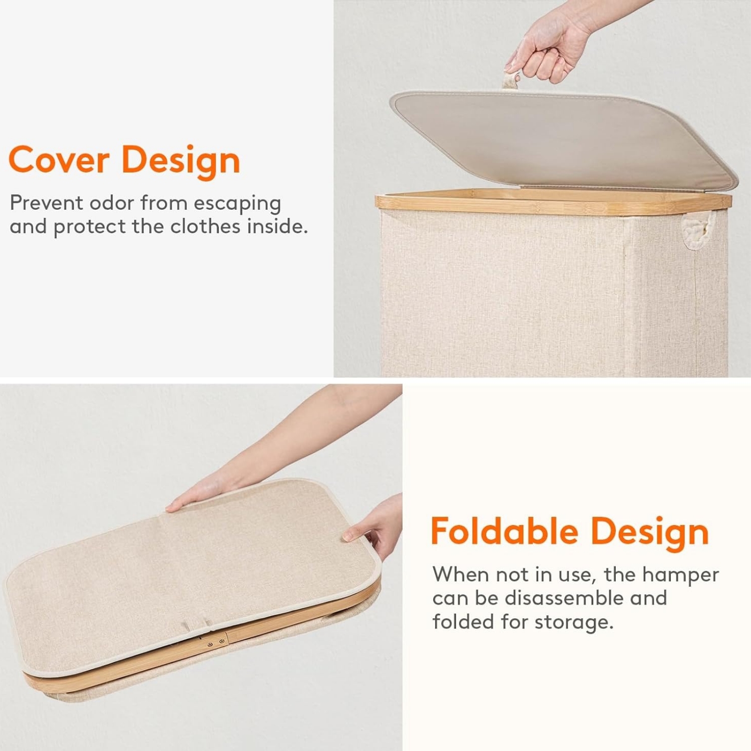 Lifewit 110L Laundry Basket with Lid, Clothes Hampers for Laundry with Bamboo Handles and 1 Removable Bag, Large Foldable Laundry Hamper for Bedroom, Bathroom, Dorm, Laundry Room, Beige